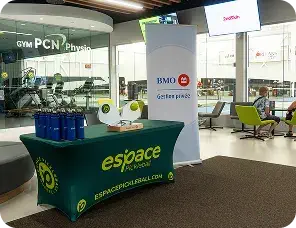 Sur place ou en ligne, découvrez notre collection de vêtements, nos promotions de pickleball et nos accessoires Espace Pickleball!