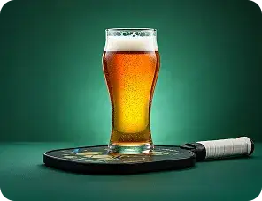 Notre bar sportif avec terrasse extérieure vous offre une sélection de collations et breuvages santé, de snacks et consommations alcoolisés, pour accompagner votre expérience pickleball en mode festif ou performance.